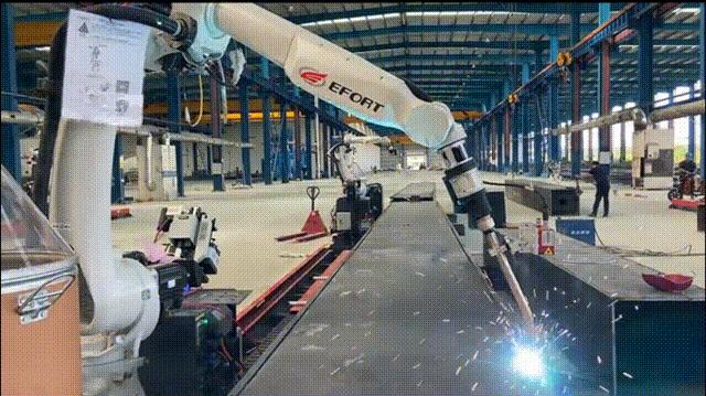 鋼結(jié)構(gòu)焊接工程量巨大、焊接環(huán)境惡劣、大型構(gòu)件作業(yè)風(fēng)險(xiǎn)高、焊接勞動(dòng)強(qiáng)度大,同時(shí),建筑鋼結(jié)構(gòu)構(gòu)件重復(fù)率低、非標(biāo)件多、節(jié)點(diǎn)形式復(fù)雜、板材厚度大,傳統(tǒng)的自動(dòng)化焊接設(shè)備很難高效地應(yīng)用起來(lái)。埃夫特依托自主化控制系統(tǒng),涵蓋從軟件開(kāi)發(fā)工具包(SDK),到融合3D視覺(jué)、激光、仿真編程、焊接工藝專家?guī)斓热轿坏募夹g(shù),同時(shí)依托埃夫特穩(wěn)定的弧焊高級(jí)工藝包,可實(shí)現(xiàn)接觸尋位、電弧跟蹤、多層多道等功能,進(jìn)而實(shí)現(xiàn)無(wú)需人工編程示教的智能焊接解決方案。整個(gè)方案機(jī)器人示教操作工作量降低95%,實(shí)現(xiàn)了機(jī)器人焊接由“機(jī)器人焊接自動(dòng)化”轉(zhuǎn)變?yōu)椤皺C(jī)器人焊接智能化”。